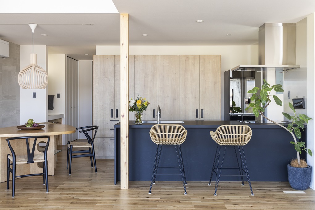 キッチンの脇にダイニングテーブルを配置して、配膳や後片付けをスムーズに。